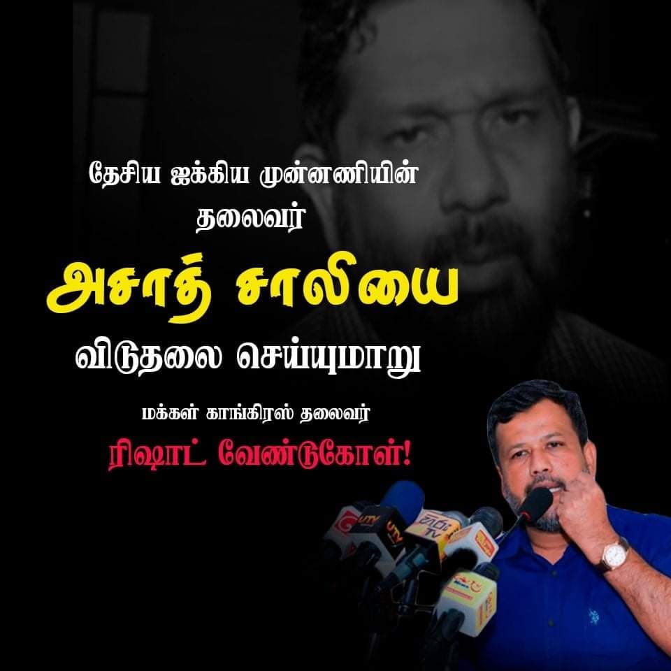 குற்றப்புலனாய்வு பிரிவினரால் கைது செய்யப்பட்டு, தடுத்து வைக்கப்பட்டுள்ள தேசிய ஐக்கிய முன்னணியின் தலைவர் அசாத் சாலியை உடனடியாக விடுதலை செய்ய வேண்டுமென மக்கள் காங்கிரஸ் தலைவர் ரிஷாட் பதியுதீன் வேண்டுகோள் விடுத்துள்ளார்.