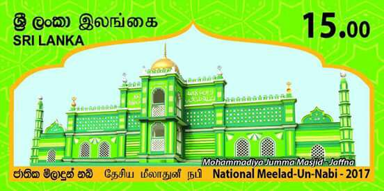 ரூபா 15 பெறுமதியான இம்முத்திரையில், யாழ்ப்பாணம் முகமதியா ஜும்ஆ பள்ளிவாசலின் முகத்தோற்றம் (புதுப்பள்ளி) அச்சிடப்பட்டுள்ளமை குறிப்பிடத்தக்கது.