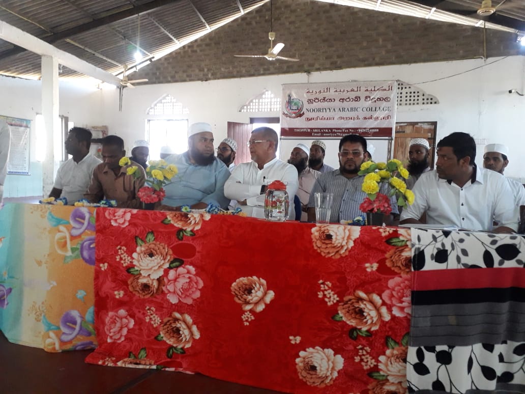 தோப்பூர் நூரிய்யா அறபுக் கல்லூரிக்கான புதிய நிருவாகக் கட்டிடமும், தளபாடங்கள் கையளிக்கும் வைபவமும் இன்று இடம் பெற்றது.அகில இலங்கை மக்கள் காங்கிரஸ் கட்சியின் தோப்பூர் வட்டாரக் குழு தலைவரும் முன்னால் வேட்பாளருமான முஜாஹித் தலைமையில் இடம் பெற்ற இவ் வைபவத்தில் முன்னால் துறை முகங்கள் கப்பற் துறை பிரதியமைச்தரும் திருகோணமலை மாவட்ட பாராளுமன்ற உறுப்பினருமான அப்துல்லா மஃறூப் அவர்கள் கலந்து சிறப்பித்தார்