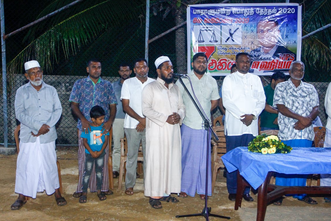 எமது மக்களின் பிரச்சினைகளை மக்களுடன் இருந்து நாம் இணங்கண்டுள்ளோம். பொலிஸிலும், பிரதேச செயலகங்களிலும், எமது நிலை என்னவென்பது குறித்து நான் கூறி நீங்கள் அறிய வேண்டியதில்லை. எமது மக்களை அவர்கள் வழிநடத்துக்கின்ற விதம் என்னவென்பது பற்றி நாங்கள் தினந்தினம் காண்கிறோம். பிரதேச செயலகங்களுக்கும், பிரதேச சபைகளுக்கும், வைத்தியசாலைகளுக்கும் என பல கிலோ மீற்றர்கள் எமது மக்கள் பயணிக்க வேண்டிய நிலையே இன்றுள்ளது. எமது வாழ்வாதாரத்தை பிரயாணத்துக்காகவே செலவிட வேண்டியுள்ளது. எமது மக்களின் பிரச்சினைகளுக்கான நிரந்தரத் தீர்வுத் திட்டங்களுடனேயே நாம் தேர்தல் களத்தில் வாக்குக் கேட்கின்றோம்” எனத் தெரிவித்தார்.மக்கள் காங்கிரஸின் கல்பிட்டி பிராந்திய உதப தலைவரும், முதலைப்பாளி வட்டார அமைப்பாளருமான தௌபீகின் ஏற்பாட்டில் இடம்பெற்ற இந்நிகழ்வில், பிரதேச சபை உறுப்பினர்களாக ஆஸிக், அக்மல், றிபாஸ் நஸீர், பௌஸான், முன்னாள் மன்னார் பிரதேச சபை உறுப்பினர் ஷாபி, முதலைப்பாளி பள்ளிவாசல் நிருவாக சபைத் தலைவர் மக்கீன், செயலாளர் ரஹ்மதுல்லாஹ் மற்றும் ஊர் முக்கியஸ்தர்கள் எனப் பலரும் கலந்துகொண்டனர்.