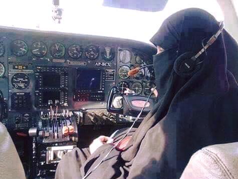 முகத்திரை ( நிகாப் ) அணிந்து விமானம் ஓட்டும் முதல் முஸ்லிம் பெண் விமானி சகோதரி ஸஹ்னாஸ் லகாரி. ( பாகிஸ்தான் )