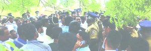திருகோணமலை, புல்மோட்டை, அரிசிமலைப் பகுதியில் 500 ஏக்கர் காணியை அளவீடு செய்யும் முயற்சிக்கு எதிர்ப்புத் தெரிவித்த மக்களுக்கும் பொலிஸாருக்கும் இடையில் நேற்று முறுகல் நிலை ஏற்பட்டது. இதையடுத்து இந்த நில அளவீடு தற்காலிகமாக இடைநிறுத்தப்பட்டது.