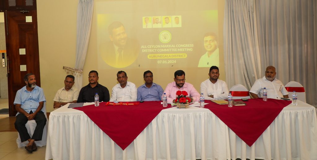 அகில இலங்கை மக்கள் காங்கிரஸின் குருநாகல் மாவட்ட செயற்குழுக் கூட்டம் முன்னாள் மாகாணசபை உறுப்பினரும் கட்சியின் குருநாகல் மாவட்டத் தலைவருமான எம்.என்.நஸீர் தலைமையில், இன்று (07) வயம்ப கூட்டுறவு கிராமிய வங்கிக் கட்டடத்தில் உள்ள ரோமன் பரடைஸ் மண்டபத்தில் நடைபெற்றது.