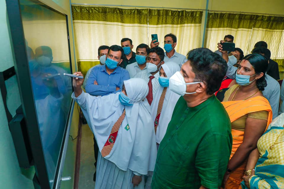 எதிர்கட்சித் தலைவர் சஜித் பிரேமதாசவின் முற்போக்கு எண்ணக்கருவாக அமைந்த, நவீன உலகில் வளமான டிஜிட்டல் எதிர்காலத்திற்காக, இந்நாட்டின் இளைய தலைமுறையை தொழில்நுட்பத்திலும் ஸ்மார்ட் கணனி பயன்பாட்டிலும் தேர்ச்சி பெற்ற சமூகமாக கட்டியெழுப்பும் ‘பிரபஞ்சம்’ வேலைத்திட்டத்தின் ஊடாக, வகுப்பறைகளுக்கான டிஜிட்டல் கணினித் திரைகள் மற்றும் கணினி உபகரணங்களை கையளிக்கும் நிகழ்வு, இன்று (08) மன்னார், எருக்கலம்பிட்டி மகளிர் மகா வித்தியாலயத்தில் நடைபெற்றது.