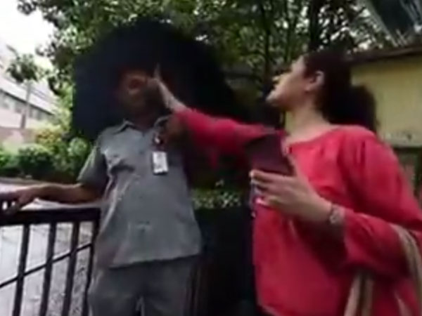 இதைத்தொடர்ந்து அவருடன் வாக்குவாதத்தில் ஈடுபட்ட வெளிநாட்டுப் பெண், கோபத்துடன் திடீரென பாதுகாவலரின் கன்னத்தில் அறைந்தார். இந்த வீடியோ காட்சிகள் சமூக வலைத்தளங்களில் வெளியாகி உள்ளது.