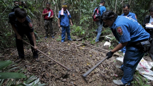 தாய்லாந்தை ஒட்டியுள்ள மலேசிய காடுகளில் ரொஹிங்கியா மற்றும் வங்கதேச மக்களின் 30 கடத்தல் முகாம் மற்றும் புதைகுழிகளை மலேசிய அதிகாரிகள் கண்டுபிடித்துள்ளனர்.