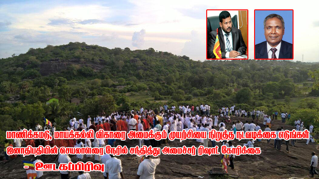 இறக்காமம் மாணிக்கமடு மாயக்கல்லி பிரதேசத்தில் முஸ்லிம்களுக்குச் சொந்தமான காணியில் பௌத்த விகாரை அமைக்க மேற்கொள்ளப்படும் முயற்சியை தடுத்து நிறுத்த நடவடிக்கை எடுக்குமாறு ஜனாதிபதியின் செயலாளர் பி பி அபயகோனிடம் அகில இலங்கை மக்கள் காங்கிரஸ் தலைவர் அமைச்சர் ரிஷாட் பதியுதீன் வேண்டுகோள் விடுத்துள்ளார்.