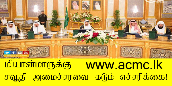 முஸ்லிம் இன படுகொலையை மியான்மர் அரசு தடுத்து நிறுத்தி விட்டு பாதிக்கபட்ட முஸ்லிம்களுக்கான நிவாரண பணிகளில் உடனே கவனம் செலுத்த வேண்டும் என்று வேண்டு கோள் விடுத்த சவுதி அரேபியாவின் அமைச்சரவை;