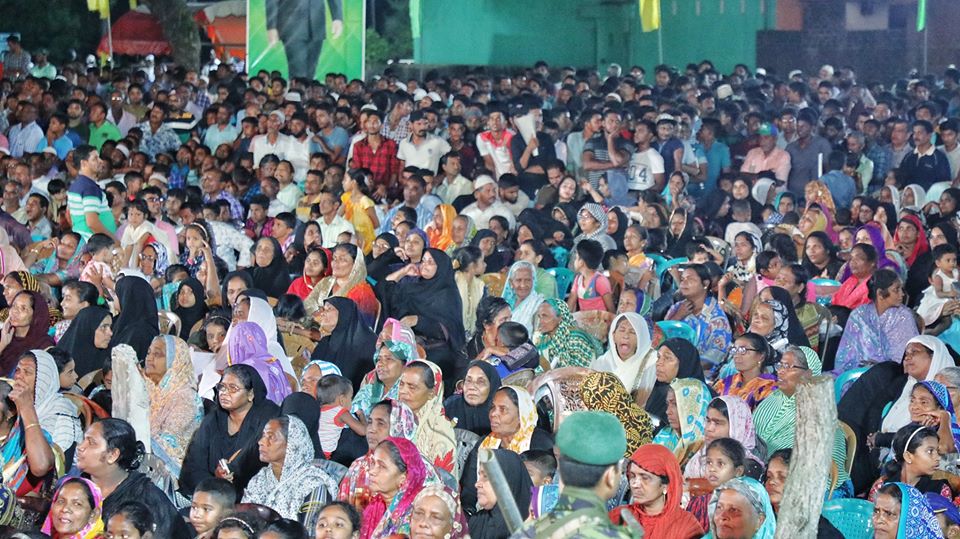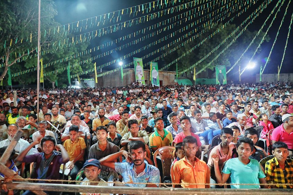 முஸ்லிம்கள் கடந்த காலங்களில் ஏராளமான கஸ்டங்கள், துன்பங்களை அனுபவித்திருக்கிறார்கள். இந்த தேர்தலில் முஸ்லிம்கள் அபுஜஹீலுக்கு வாக்களிக்கப்போகிறீர்களா அல்லது அபுதாலிபுக்கு வாக்களிக்கப்போகிறீர்களா என்பதை சிந்தியுங்கள். எமது பாதுகாப்பை எமது ன சமூகத்தின் சுய கெளரவத்தை உறுதிப்படுத்தக்ககூடிய ஓரே வேட்பாளர் சஜித் பிரேமதாச மட்டும்தான். எதிரணி வேட்பாளர் இனவாதத்தை தாரக மந்திரமாக தனது வாக்கு வேட்டைக்கு பயன்படுத்துகிறார். தமிழர்களையும் முஸ்லிம்களையும் மோதவிட்டு தனது வாக்கு வங்கியை அதிகரித்துக்கொள்ள தந்திரமாக செயற்படுகிறார்.