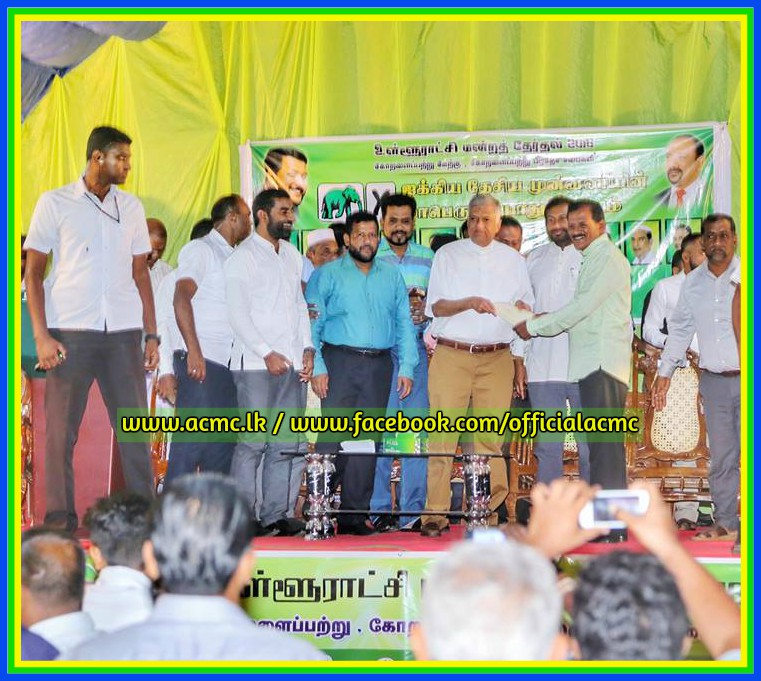 கோரளைப்பற்று மேற்கு, கோரளைப்பற்று பிரதேச சபைகளில் அகில இலங்கை மக்கள் காங்கிரஸ் சார்பாக, ஐக்கிய தேசிய முன்னணியில் போட்டியிடும் வேட்பாளர்களை ஆதரித்து, ஓட்டமாவடியில் நேற்று (31) இடம்பெற்ற தேர்தல் பிரச்சாரக் கூட்டத்தில் பிரதமர் ரணில் விக்கிரமசிங்க கலந்து கொண்டார். அகில இலங்கை மக்கள் காங்கிரஸின் தவிசாளரும், பிரதியமைச்சருமான அமீர் அலி தலைமையில் இடம்பெற்ற இந்தக்கூட்டத்தில், அமைச்சர் ரிஷாட் தொடர்ந்து உரையாற்றுகையில்,