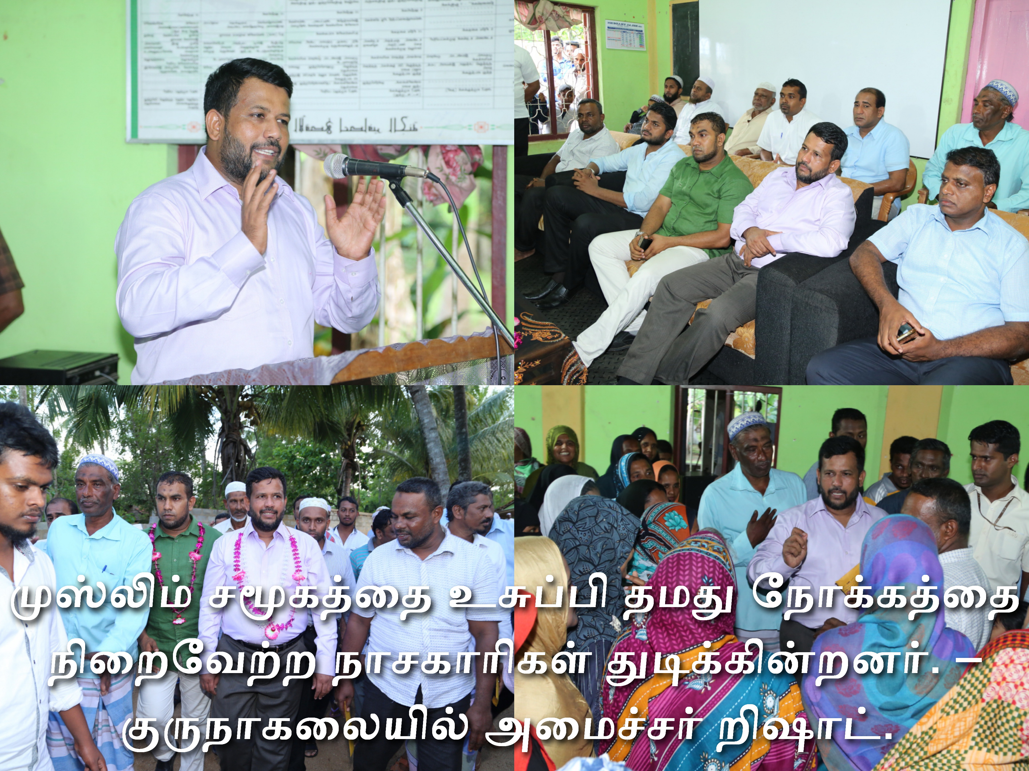 அமைதியாக வாழுகின்ற – அவ்வாறே தொடர்ந்தும் வாழவிரும்புகின்ற முஸ்லிம் சமூகத்தின் மீது அவதூறுகளையும் பழிச் சொற்களையும் சுமத்தி எம்மை சீண்டுவதற்கு இனவாதிகளும், இஸ்லாமிய விரோதிகளும் தொடர்ந்து முயற்சிகளை மேற்கொண்டுவருவதாகவும் எமது சமூகத்தை உசுப்பிவிடுதன் மூலம் தங்கள் இலக்கினை அடைவதற்கு முயற்சிப்பதாகவும்; அமைச்சர் றிஷாட் தெரிவித்தார்..