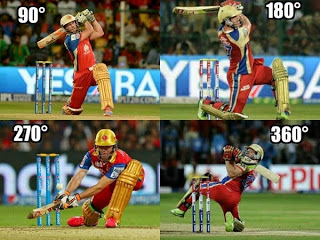 கிரிக்கெட்டை பொறுத்த வரை பேட்ஸ்மேன்கள் லெக் சைட், அல்லது ஆஃப்சைடுகளில் ஏதாவது ஒன்றில் சிறந்து விளங்குவார்கள். சச்சின் போன்ற ஒரு சிலர்தான் இரண்டு பக்கங்களிலும் சிறந்து விளங்குவார்கள். சச்சினிடம் ரிவர்ஸ் ஸ்வீப் ஷார்ட்களை பார்ப்பது அரிது. ஆனால் டி வில்லியர்ஸ் மைதானத்தின் அனைத்து பகுதிக்கும் பந்தை செலுத்தும் வல்லமை கொண்டவர்.படுத்து, புரண்டு, விழுந்து, உருண்டு எல்லாம் அடிப்பார்.அந்த வகையில் டி வில்லியர்சுக்கு அவரது ரசிகர்கள் வைத்திருக்கும் செல்லப்பெயர் மிஸ்டர்.360.