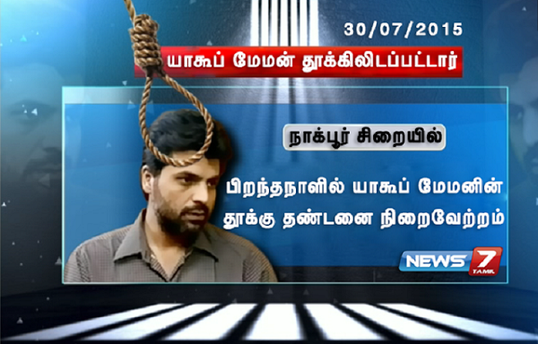 கொண்டு,1994 ஜூலையில் சரண் அடைந்து, கடந்த 21 ஆண்டுகளாக ஜெயில்வாசம் அனுபவித்து வந்த நிலையில், இம்மாதம் 30-ந்தேதி தூக்கில் போடப்படுகிறார் யாகூப் மேமன்.