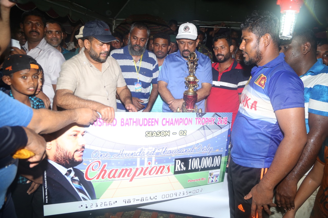 புத்தளம், வேப்பங்குளம் 04 ஆம் கட்டையில் இடம்பெற்ற, ரிஷாட் பதியுதீன் கிரிக்கட் கிண்ண சுற்றின் இறுதிப் போட்டிப் பரிசளிப்பு விழாவில், அகில இலங்கை மக்கள் காங்கிரஸ் தலைவரும், அமைச்சருமான ரிஷாட் பதியுதீன் கலந்துகொண்டு வெற்றிபெற்ற அந்-நூர் விளையாட்டுக் கழகத்துக்கு வெற்றிக் கிண்ணத்தை வழங்கி வைத்தார்.