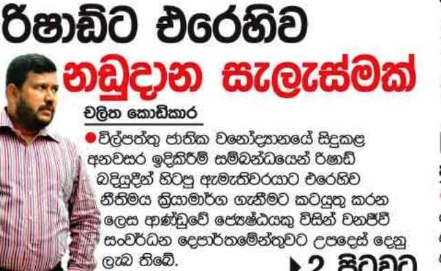 இவ் விடயம் சம்பந்தமாக இன்று வெளிவந்த சிங்கள இதழான மவ்பிம பத்திரிகையில் முற்பக்கத்தில் அமைச்சர் றிசாத்தின் படத்தை பிரசுரித்து செய்தி வெளியிட்டுள்ளது.