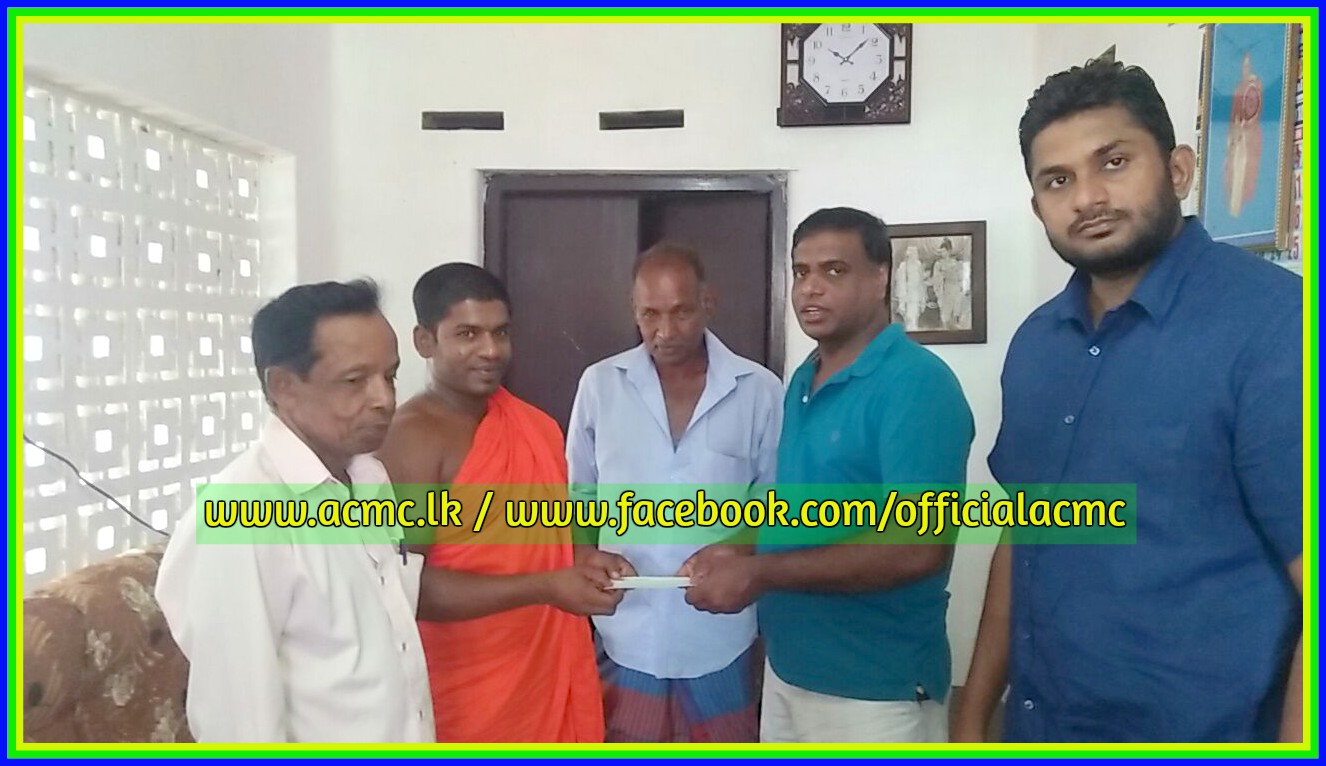முன்னாள் மாகாண சபை உறுப்பினரும், சதொச நிறுவனத்தின் பிரதித் தலைவருமான எம்.என்.நஸீர் மற்றும் முன்னாள் பிரதேச சபை உறுப்பினர் அன்பாஸ் அமால்தீன் ஆகியோர் விகாராதிபதியிடம் இந்த உதவித் தொகையை கையளித்தனர்.