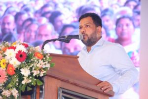 கடந்த ஜனாதிபதி தேர்தலில் உங்களின் வெற்றிக்காக நீங்களும் பிரதமரும் தனித்தனியாக இந்த பிரதேசத்துக்கு வந்து மக்கள் ஆணை கேட்ட போது நாமும் உங்கள் இருவருடனும் இணைந்து பிரசாரங்களை மேற்கொண்டு உங்கள் வெற்றிக்காக பாடுபட்டோம். இந்த பிரதேச மக்கள் தாம் பட்ட கஷ்டங்களுக்கு விடிவு கிடைக்கும் என உங்களை நம்பி வாக்களித்தனர். அதன் பிரதிபலனை பெற்றுக் கொள்ளும் நாளாக இன்றைய நாளை நாங்கள் பார்க்கின்றோம். இந்த வரலாற்று நிகழ்வில் காணிப்பிரச்சினை கல்விப் பிரச்சினை, பாதைப் பிரச்சினை ஆகிய பல்லாயிரக்கணக்கான பிரச்சினைகளுக்கு தீர்வைப் பெற்றுத் தந்து நீங்கள் தேர்தல் காலத்தில்; நீங்கள் வழங்கிய வாக்குறுதியை இன்று நிறைவேற்றியமைக்கு மக்கள் பிரதிநிதி என்ற வகையில் நன்றி கூற கடமைப்பட்டிருக்கின்றேன். அமைச்சர் வஜிர அபேவர்த்தனவுக்கும் இந்த சந்தர்ப்பத்தில் நன்றி கூறுகின்றோம்.