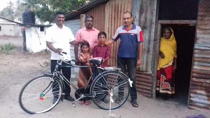 பிரபல வர்த்தகர் கயிற்று கடை “ராசன்” என்பவரை தொடர்புகொண்டு நிலைமையை எடுத்துக்கூரியதுக்கு இணங்க, அவரது மாமனார் காலம் சென்ற கை.கனேசையா அவர்களின் ஞாபகார்த்தமாக அவரது குடும்பத்தினரால் மேற்படி குடும்பத்தை சேர்ந்த மாணவர்களுக்கு புதிய துவிச்சக்கரவண்டி ஒன்று 2019.02.18 நேற்று பி.ப 6.௦௦ மணியளவில் வழங்கி வைக்கப்பட்டுள்ளது. இந்திகழ்வில் கட்சியின் முக்கியஸ்தர்களான நூர்தீன் சம்சுன் மற்றும் சுனீஸ் சுவர்கஹான் கலந்து கொண்டனர்