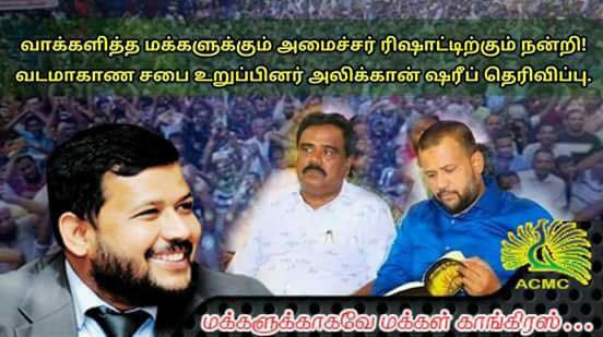 கடந்த 01/10/2017 திகதி தொடக்கம் கௌரவ கைத்தொழில் மற்றும் வர்த்தக வணிபத்துறை அமைச்சரும் அகில இலங்கை மக்கள் காங்கிரஸ் காங்கிரசின் தேசிய தலைவருமான அல் ஹாஜ் ரிஷாட் பதியுதீன் அவர்களின் சிபாரிசின் பேரில் வட மாகாண சபை உறுப்பினராகத் தெரிவு செய்யப்பட்டுள்ளேன் என்பதை மிக்க மகிழ்ச்சியுடன் அறியத்தருகின்றேன்.