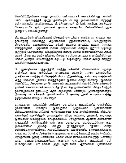 30 ஆண்டுகளாக புத்தளத்தில் வாழ்ந்த மக்களின் பிள்ளைகளின் பிறப்புச் சான்றிதழ் முதல் வசிப்பிடம் அனைத்தும் புத்தளம் என்றே காணப்படும். அகதிகளாக வாழ்ந்த பிரதேசத்தின் பெயர் இருக்கின்றது என்ற காரணத்தினால் அந்த மக்களின் பூர்வீகம் விலத்திக்குளம் இல்லை என்று போகாது. இவர்கள் வெளியிட்ட பிழையான அறிக்கையையும் ஊடகங்களின் பொய்ப்பிரச்சாரத்தையும் நாங்கள் வண்மையாகக் கண்டிப்பதோடு வடக்கு முஸ்லிம்களின் மீள்குடியேற்றம் நியாயபூர்வமாக நடைபெற அரசு வழிவகுக்க வேண்டும். இனவாதிகளினதும் இனவாத ஊடகங்களும் முஸ்லிம்களின் 3 தசாப்த அகதி வாழ்வை மதித்து நடுநிலையாக செயற்பட வேண்டும்.