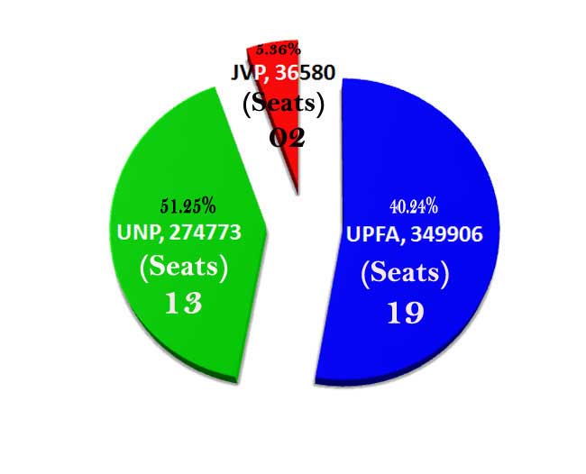 வெளியாகியுள்ள ஊவா மாகாண சபைத் தேர்தல் முடிவுகளின் படி, ஐக்கிய மக்கள் சுதந்திரக் கூட்டமைப்பு 349906 வாக்குகளைப் பெற்று 19 ஆசனங்களை வசப்படுத்தியுள்ளது.இதேவேளை, ஐக்கிய தேசியக் கட்சி 274773 வாக்குகளைப் பெற்று 13 ஆசனங்களையும், மக்கள் விடுதலை முன்னணி 36580 வாக்குகளைப் பெற்று 02 ஆசனங்களையும் பெற்றுக் கொண்டுள்ளன.இதன்படி ஐக்கிய மக்கள் சுதந்திரக் கூட்டமைப்பு 51.25 வீத வாக்குகளையும், ஐக்கிய தேசியக் கட்சி 40.24 வீத வாக்குகளையும், மக்கள் விடுதலை முன்னணி 05.36 வீத வாக்குகளையும் வசப்படுத்தியுள்ளன.இதேவேளை சரத் பொன்சேகாவின் ஜனநாயகக் கட்சி இரு மாவட்டங்களிலும் 6076 (0.89) வாக்குகளைப் பெற்றுள்ளது. எனினும் ஆசனங்கள் எதனையும் அக் கட்சியால் பெற முடியவில்லை.பதுளை மாவட்டத் தேர்தல் முடிவுகளின் பிரகாரம், ஐக்கிய மக்கள் சுதந்திர கூட்டமைப்பு 209,056 வாக்குகளைப் பெற்று 09 ஆசனங்களையும், ஐக்கிய தேசியக் கட்சி 197,708 வாக்குகளைப் பெற்று 08 ஆசனங்களையும், மக்கள் விடுதலை முன்னணி 20,625 வாக்குகளைப் பெற்று ஒரு ஆசனத்தையும் வசப்படுத்தியுள்ளன.