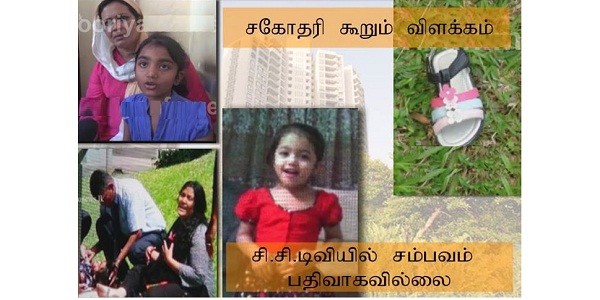 பின்னர் குடிநீர் அருந்துவதற்காக மூத்த சகோதரியுடன், உயிரிழந்த குழந்தை மின்தூக்கியில் 11 வது மாடிக்கு சென்றுள்ளார். பின்னர் அவர் 22 ஆம் மாடியிலிருந்து கீழே விழுந்துள்ளதாக நம்பப்படுகின்றது.