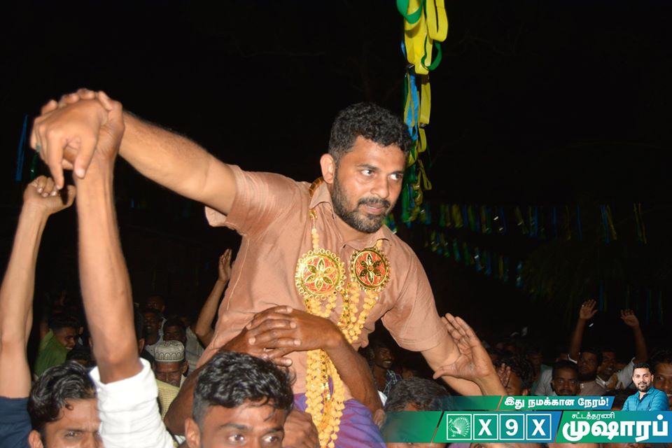 பெருந்திரளான மக்கள் வெள்ளம் புடைசூழ உரையாற்றிய சட்டத்தரணி முஷாரப்பை, பிரதேசவாழ் மக்கள் தோள்களில் சுமந்து, பவனியாக அழைத்து சென்று, பெரும் ஆதரவையும் வரவேற்பையும் வழங்கியிருந்தமை குறிப்பிடத்தக்கது.