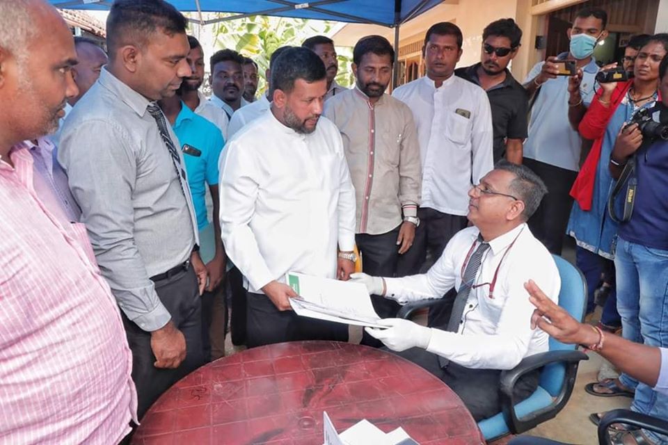 எதிர்வரும் பொதுத்தேர்தலில் ஐக்கிய மக்கள் சக்தி கூட்டமைப்பில், வன்னியில் போட்டியிடவுள்ள, அகில இலங்கை மக்கள் காங்கிரஸின் தலைவரும் முன்னாள் அமைச்சருமான அப்துல் ரிஷாட் பதியுதீன், வவுனியா தெரிவத்தாட்சி அலுவலகத்தில் இன்று (19) வேட்புமனுவைக் கையளித்தார்.