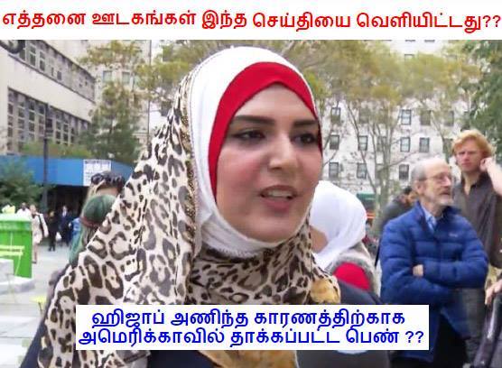 அரைகுறை ஆடையுடன் பெண்களை போகப்பொருளாக காட்டுவதை பெண் சுதந்திரம் என்றும் , ஹிஜாப் என்னும் கண்ணியமான ஆடையை அணிவதை பிற்போக்கு தனமாகவும் காட்டுவதை கொள்கையாக கொண்ட அமெரிக்க ஊடகங்கள் எதுவும் ஹிஜாப் அணிந்ததற்காக தாக்கப்பட்ட இந்த சம்பவத்தை பற்றிய எந்த ஒரு உண்மைகளையும் மக்கள் மன்றத்தில் கொண்டு சேர்க்க வில்லை..மாறாக கள்ள மவ்னத்தை மட்டும் தான் பதிலாக கொண்டு வருகின்றனர்,, கேடுகெட்ட ஊடகங்கள்…