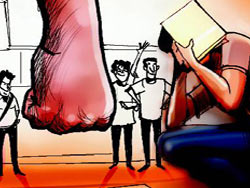 ஆறாம் தரத்­துக்கு புதி­தாக வந்த மாணவி ஒருவர் அணிந்­தி­ருந்த சீரு­டையை, அங்­கி­ருந்த மாண­வர்கள் சிலர் இரண்­டாக கத்­த­ரித்து விட்டு, பின்னர் மாண­வர்கள் மத்­தி யில் நடந்துவரு­மாறு பணித்­துள்­ளனர்.