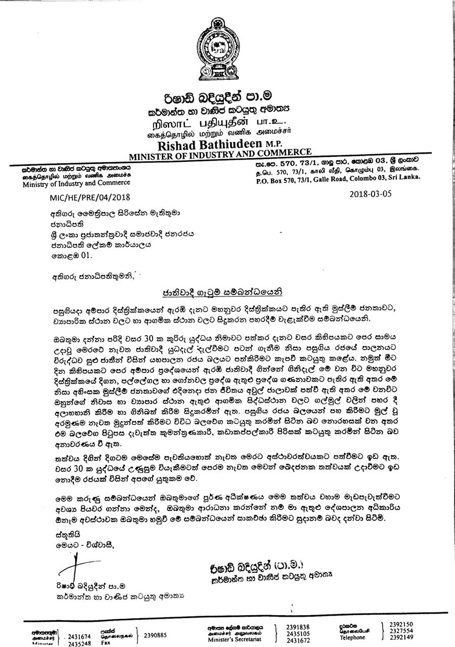 இலங்கையில் தஞ்சமடைந்துள்ள ரோஹிங்கியர்கள் தொடர்பில், சர்வதேச சட்டத்துக்கு அமைய நடவடிக்கை மேற்கொள்ளுமாறு தலைவர் ரிஷாட் ஜனாதிபதிக்கு அவசர கடிதம்! கடந்த...
