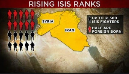 கணிக்கப் பட்டுள்ள 20 000 பேரில் 3400 பேர் மேற்குலகைச் சேர்ந்தவர்கள் எனவும் அமெரிக்காவில் இருந்து மட்டும் 150 பேர் ISIS இற்குச் சென்று சேர்ந்திருப்பதாகவும் அதிகாரிகள் தெரிவித்துள்ளனர். இதற்கு முக்கிய காரணமாக சமூக வலைத் தளங்கள் ஊடாக ISIS உலகின் மூலை முடுக்குகளில் இருந்தும் தனது இயக்கத்துக்கு ஆள் சேர்க்கும் விதமாக பிரச்சாரம் செய்வதும் அல்கொய்தாவை விட மிகத் திறமையாகச் செயற்படுவதும் அமைந்துள்ளன என்பதும் குறிப்பிடத்தக்கது.