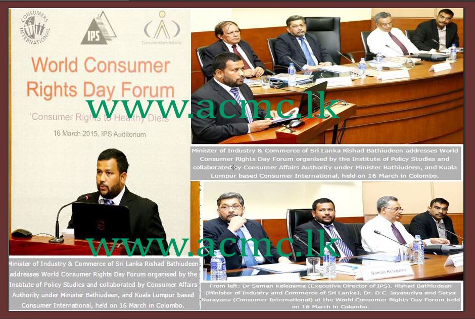Minister Bathiudeen was addressing the World Consumer Rights Day Forum organised by the Institute of Policy Studies and collaborated by Consumer Affairs Authority under Minister Bathiudeen, and Kuala Lumpur based Consumer International, held on 16 March in Colombo.